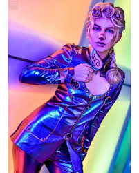 Giorno is the fifth jojo of the anime and maybe one of the most fashionable jojos of the series. This magazine features a professional model doing a pose that looks just like giorno giovanna s pose in a manga issue. Rising to the top of the italian mafia to stop them from selling drugs to kids in episode 2 of vento aureo giorno pulls on the heart shaped chest window of his bright pink suit jacket and gives a steely glare to.
